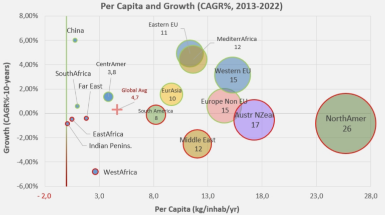 The last analysis carried out in 2024 indicates that overall consumption of tomato products has, on the whole, increased reasonably in recent years, although actual year-to-year variations are most likely less pronounced at the global and regional levels than shown by the calculated results of the study.